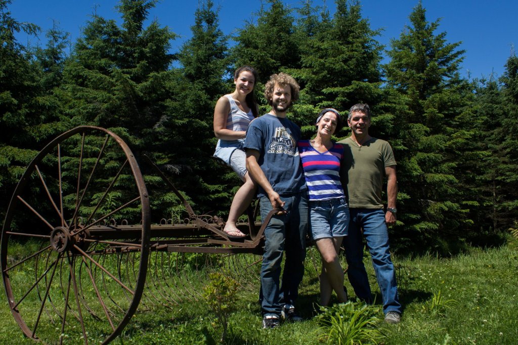 L’Écoferme des générations est née de l’envie de vivre autrement en mettant en commun les forces de chacun. Pour que nous puissions réaliser ce projet, un retour à la terre et une vie bigénérationnelle à la campagne s’imposaient. Guidés par nos valeurs environnementales et familiales, nous nous sommes établis à Portneuf, en 2014, pour commencer la grande aventure : agrandir et rénover la maison et les bâtiments (qui en avaient bien besoin!); donner un peu d’amour à nos champs en friche et préparer un plan des jardins; planter des arbres; bâtir des enclos pour les petits animaux; tester différentes façons de cultiver; apprendre chez d’autres maraîchers. Disons-le, nous partions de très loin!